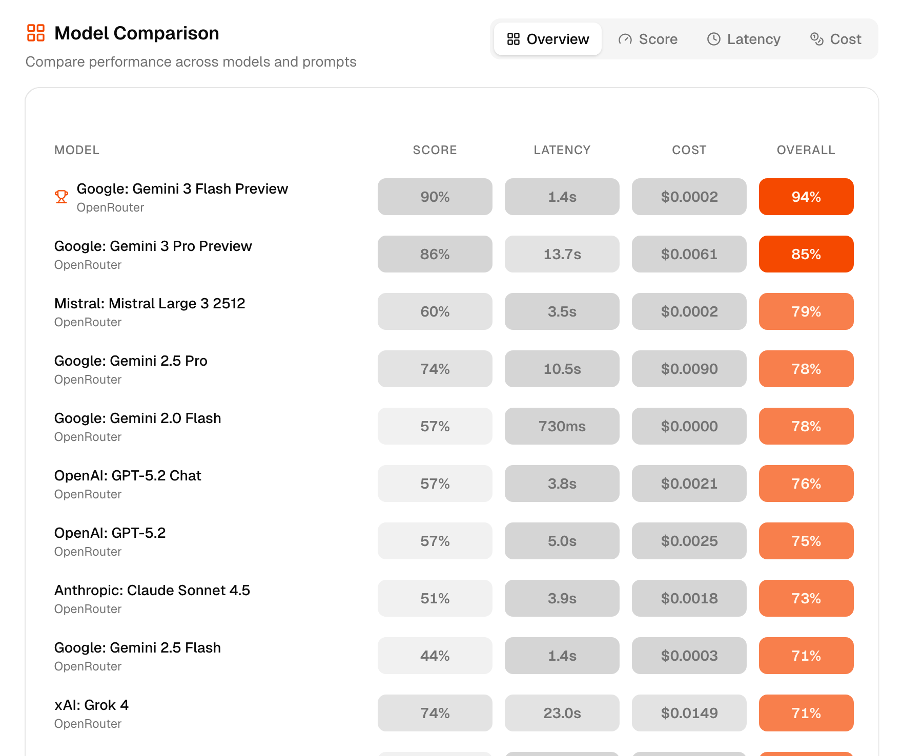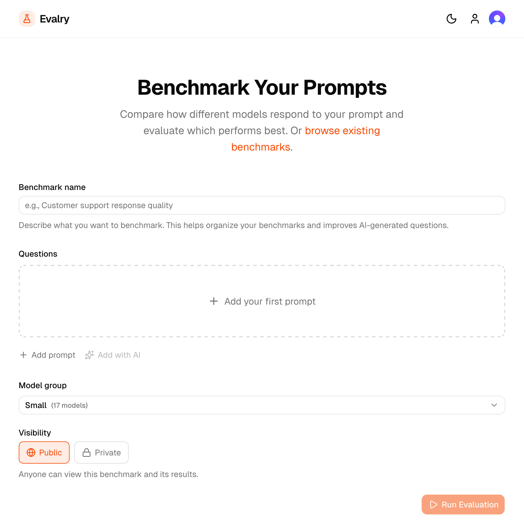 So to help my friend and anyone else with the same problem, I built Evalry. It provides all this in one simple tool that does the heavy lifting for you: It tests your actual prompts against 300+ models at once. Compare quality, speed, and cost side-by-side. No code required, results in seconds.